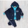 Φόρμα,σετ 3 τεμαχίων φούτερ με ελαφρύ πέλος αποτελείται από ζακέτα σε πράσινο λαδί χρώμα μπλούζα βαμβακερή σε μπλέ χρώμα και παντελόνι σε πράσινο λαδί χρώμα.