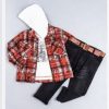 Σετ 3 τεμαχίων αποτελείται από ζακέτα πλεκτή σε μπορντό χρώμα,πουκάμισο βαμβακερό καρώ σε λαδί γκρί χρώματα και παντελόνι τζιν σε μαύρο χρώμα.