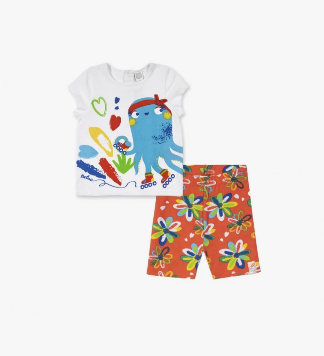 Σετ 2 τεμαχίων βαμβακερό μακό ελαστικό, η μπλούζα σε λευκό χρώμα,το κολάν σε πορτοκαλί χρώμα από τη συλλογή HOLIDAYS της TUC TUC.