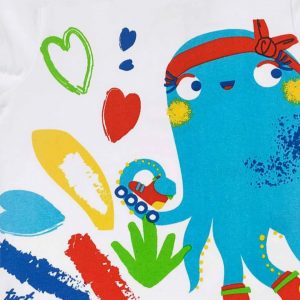 Έχει κοντό κοφτό μανίκι, στρογγυλή λαιμόκοψη για τις ηλικίες 18 μηνών έως και 3 ετών διαθέτει τρουκς στο πίσω μέρος για ευκολία στην εφαρμογή.