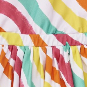 Φόρεμα βαμβακερό ποπλίνα σταθερό ύφασμα σε λευκό χρώμα, χρωματιστές ρίγες all over από τη συλλογή LAGUNA BEACH της TUC TUC.