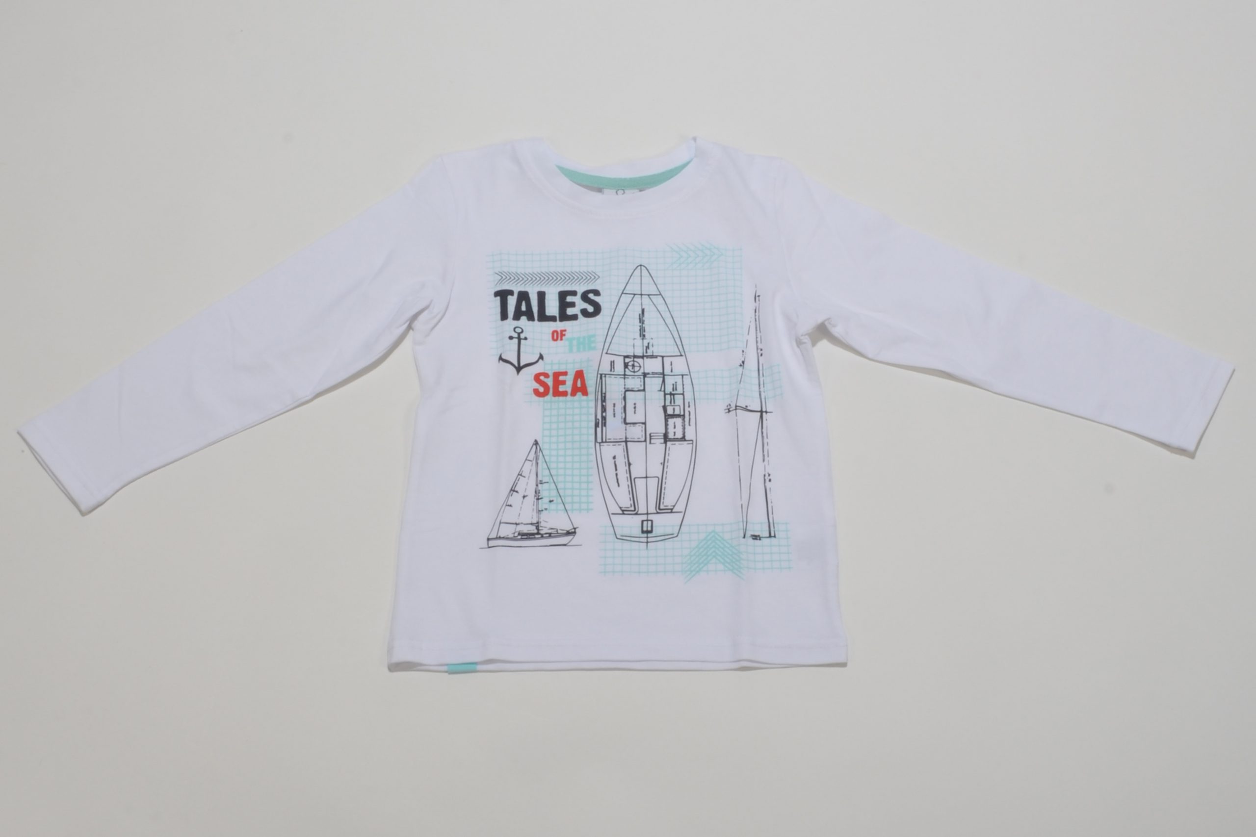 Έχει μακρύ μανίκι, στρογγυλή λαιμόκοψη, εντυπωσιακό τύπωμα στο μπροστινό μέρος. Μονόχρωμη η πίσω όψη.